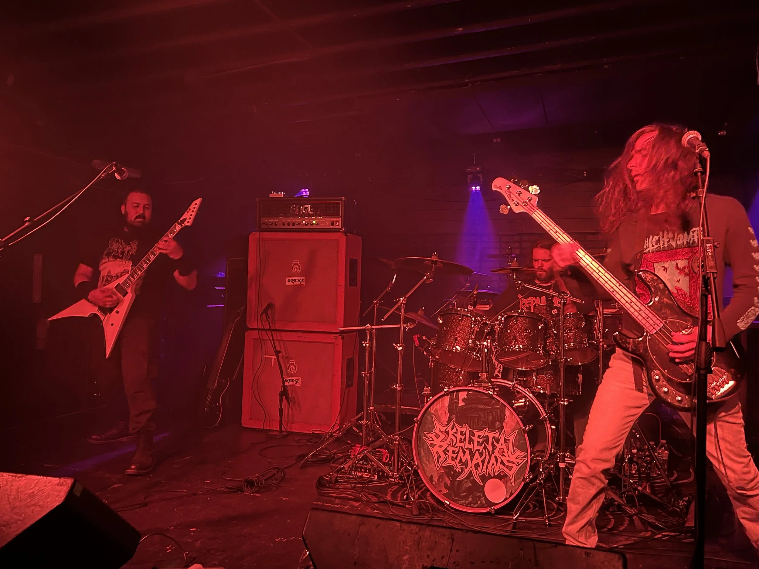 One of the only other Brutal Death Metal bands performing, Splattered immediately brought back those memories I had of watching many Brutal bands back in the mid to late 2000s. From the pulverizing gurgles and non-stop movement on-stage from Andy Smith, to the rip-roaring, suffocating number of riffs in supply, Splattered’s set continued to open up the pit, as well as the different contrasts of ability and play. One song, an absolute Slam fest, to cerebral melodies and complexed solos from Justin Sakogawa. (He will make another stunning appearance in this review, take note.) It can be difficult to keep Brutal Death Metal dynamic, but I found the grand abilities of Splattered, as well as the variance in their style to keep their set quite lovely. The amount of fun Justin and Travis LaBerge were having on stage playing riffs together from opposite sides, was a joy to see. Their latest EP, Repugnant Virtousity, just released a few weeks ago, was represented in their set, and showed promising, extreme music. Splattered was a welcomed surprise, and the crowd was having a blast during their set.
