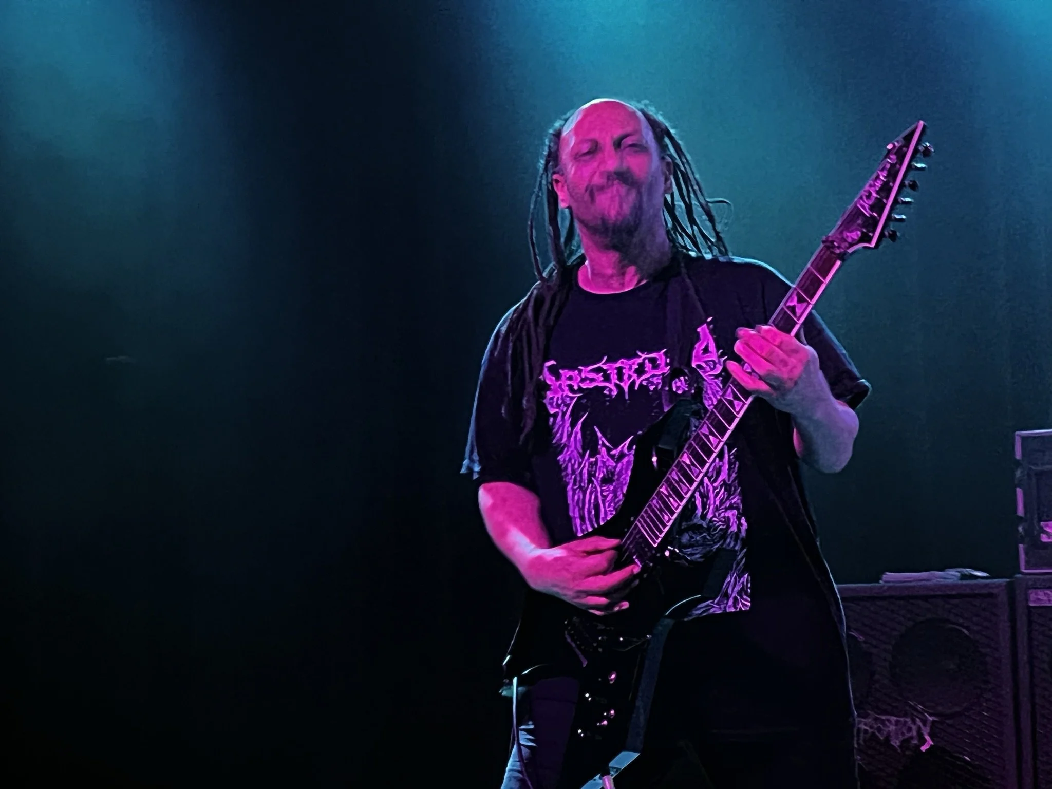 Much like Archspire, for example, it’s an effort and joyfully exhausting watching Atheist, with the amount of music bouncing off one another, you don’t want to miss a single moment. The man, founder, and supremely stunning creator of Atheist, Kelly Shaefer’s reputation certainly had the Glasshouse going bonkers, from his signature singing style, matching every nook and cranny of the music with his hands, as well as his exciting banter in-between songs. You’d believe after 30+ years of singing, the quality would decrease, yet I felt no drop-off vocally, whatsoever. Not alone in keeping that same energy, Yoav Ruiz-Feingold’s Tasmanian Devil-like movement on-stage, spinning in circles playing his bass so damn low to the ground, all while happily mean-mugging the crowd to keep the whirling pit going. “Mother Man” was all Yoav and Anthony Medaglia, from that dazzling bass intro, to Medaglia’s astonishing Fusion beats and perfectly-timed fills, leading into that marvelous trip to 1989, “Piece of Time.” This is now my 3rd time seeing this lineup of Atheist, and I tremendously hope it stays. Their near 60-minute set went by like a warmup, and the longest set I’ve seen from them. Another brilliant, spectacular performance from one of Death Metal’s greatest.