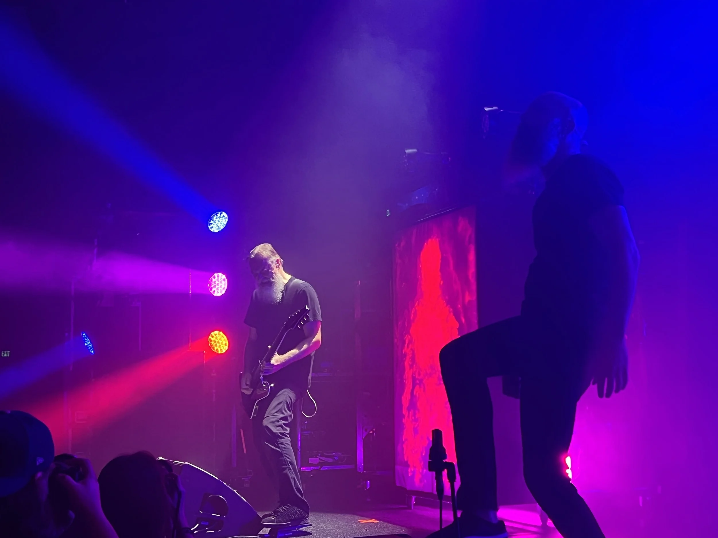 Animated, powerful snare hits, and syncing with those 3-beat guitar riffs opening “Pirana”, Rick Smith’s jolly drum play kept the tempo exciting for Torche, and a grand live spectacle to gaze upon. Despite Torche’s songs clocking in around 2-minutes, there was this ‘Mastodon-like’ instrumental aspect that I enjoyed hearing: music taking over the song, and becoming lost within it. The vocals would pop in, but they didn’t take over much of what was occurring. Instead, the suffocation low-end volume resonated with many of the fans, acknowledging the heaviness present, particularly in “In Pieces”, with only a few vocal lines, and just 3-minutes of chugging chords and cave-collapsing musical waves. Having a blast performing, and this nonchalant, yet absorbed focus from frontman Steve Brooks, distributed these Bluesy, hard-hitting bending note solos. Jon Nunez, the more active guitar player on stage, engaged with the crowd, matching the rhythm sections from Brooks, creating for a flaring dynamic to watch.